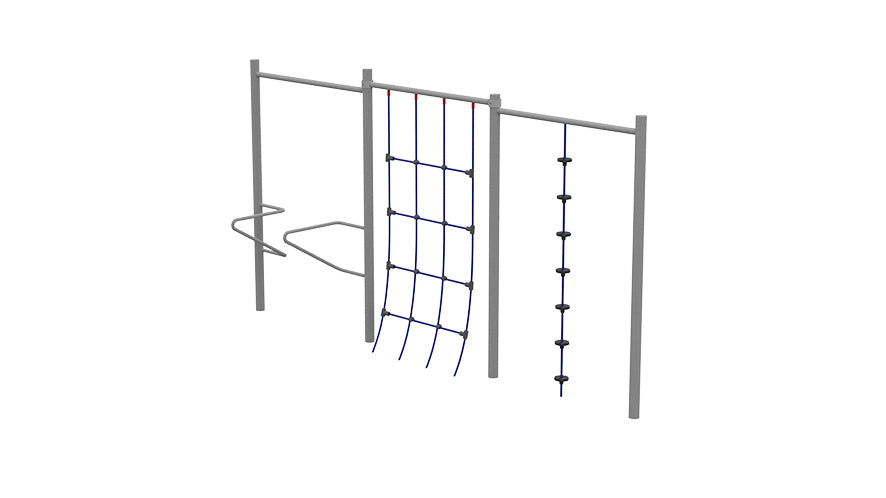 This is galvanized powder-coated steel, so it handles weather without any issues. We have installed these in school yards, park fitness zones, and alongside traditional play equipment. Kids treat them like jungle gym challenges: how long can you hang, can you do a pull-up, can you swing from the rings. It builds grip strength, shoulder stability, and persistence in a way that feels like play rather than exercise.