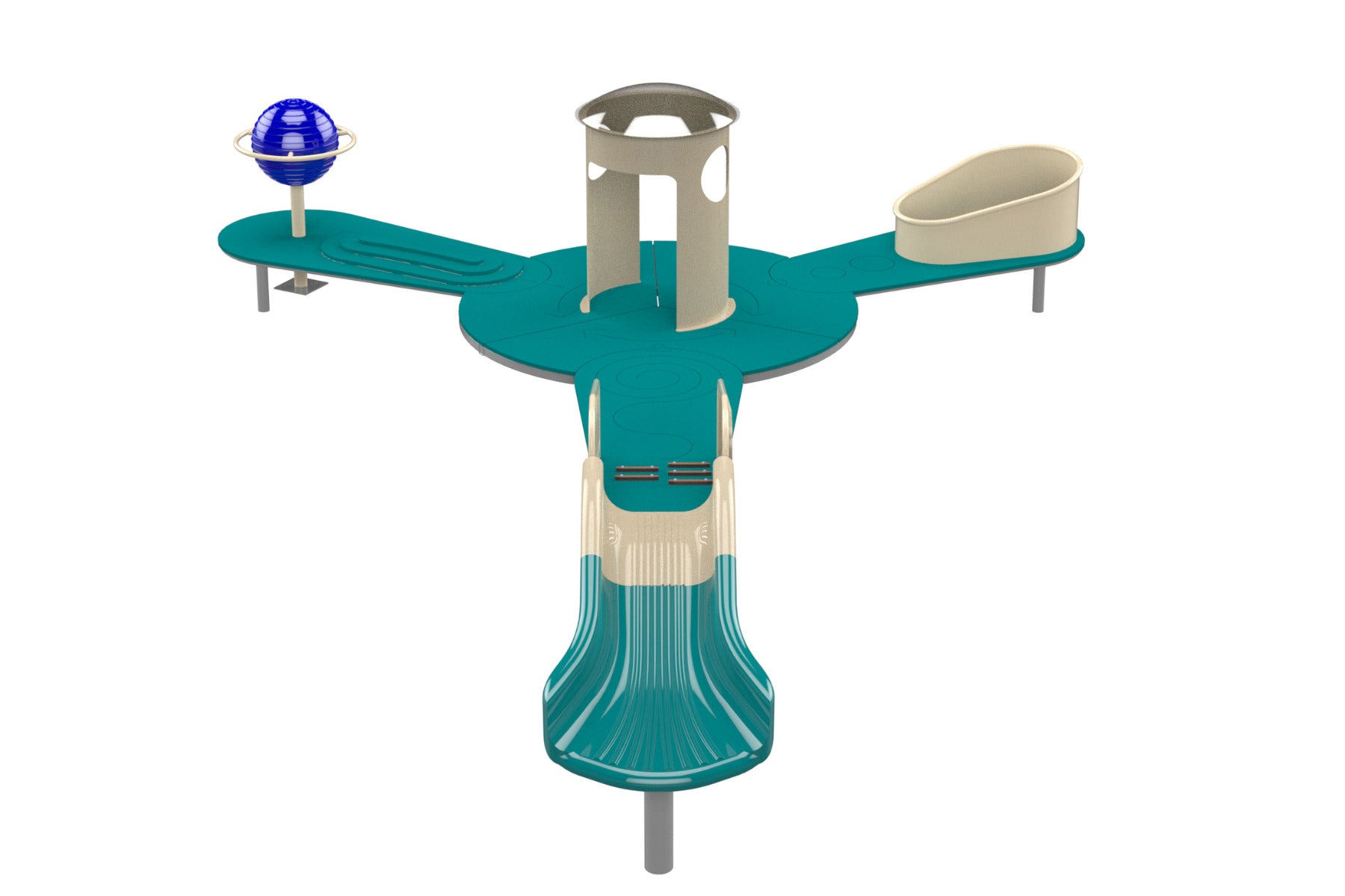The Mount Elbert takes a different approach than most toddler structures. Instead of packing activities into a tight footprint, it spreads them out across wide paths and play circles so toddlers can explore at their own pace without getting overwhelmed or waiting in line. The interactive sensory elements along the paths give younger kids something to engage with while older toddlers head for the tower and slides.