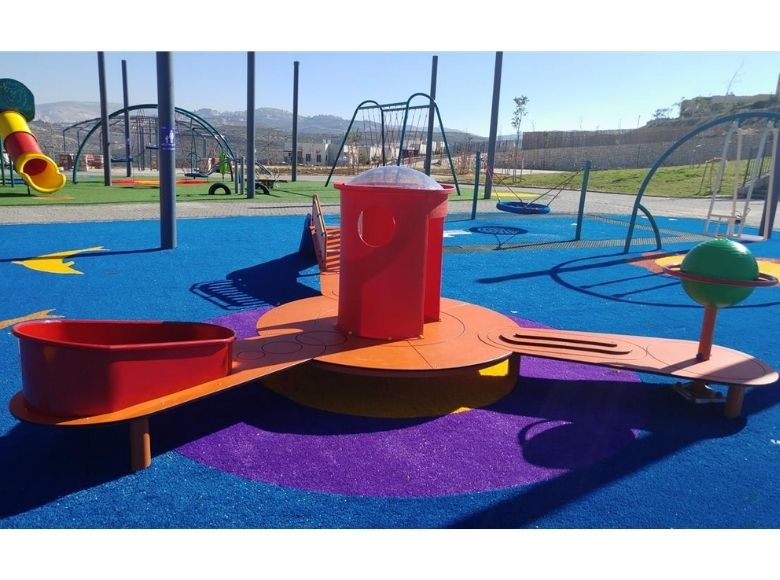 The Psagot Playgrounds Mount Elbert is one of the bigger toddler structures we carry — 16-child capacity across a layout that includes wide paths, small slides, play circles, a central climbing tower, and interactive sensory elements. It is built for ages 2-5 with a fall height under 2 feet, which is about as gentle as a large-scale structure gets. ASTM F1487 and IPEMA certified, recycled HDPE construction.