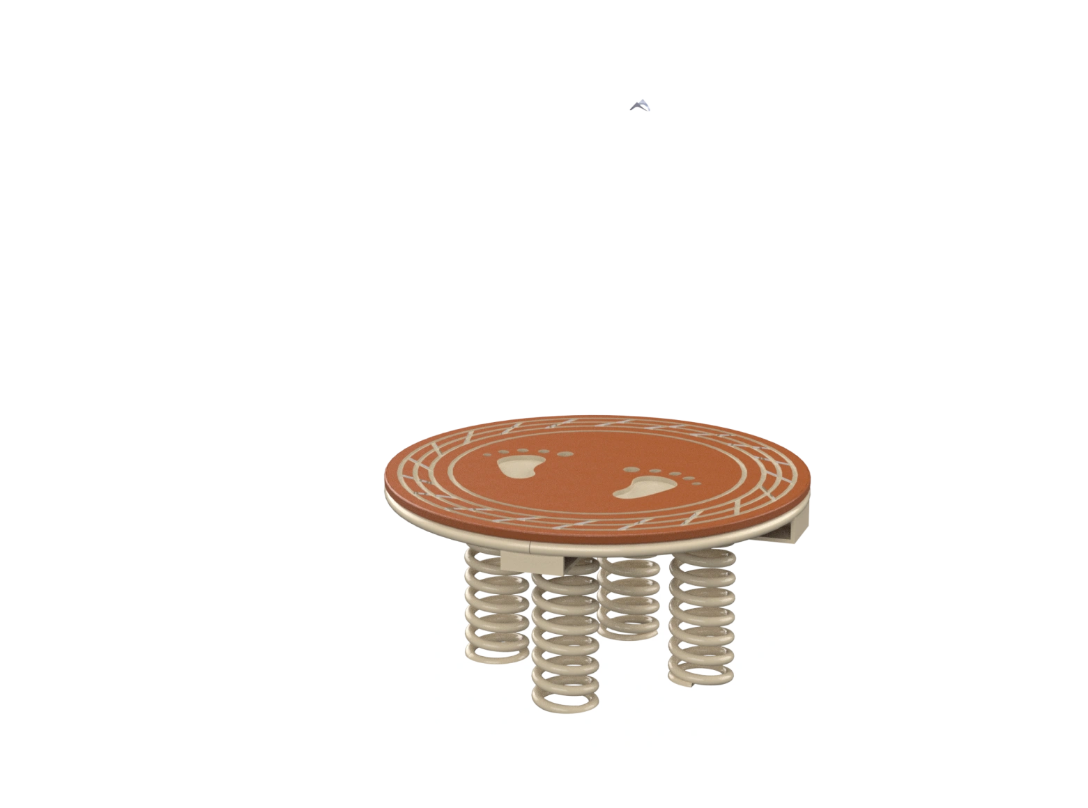 MATERIALS: Engraved HDPE treading surface attached to four steel springs.