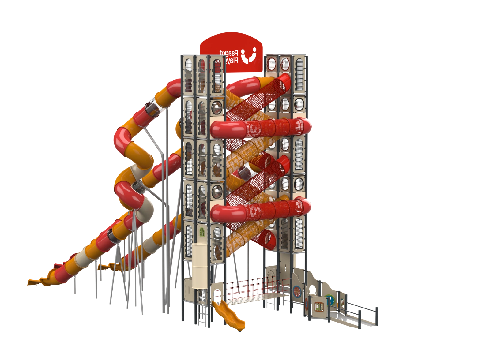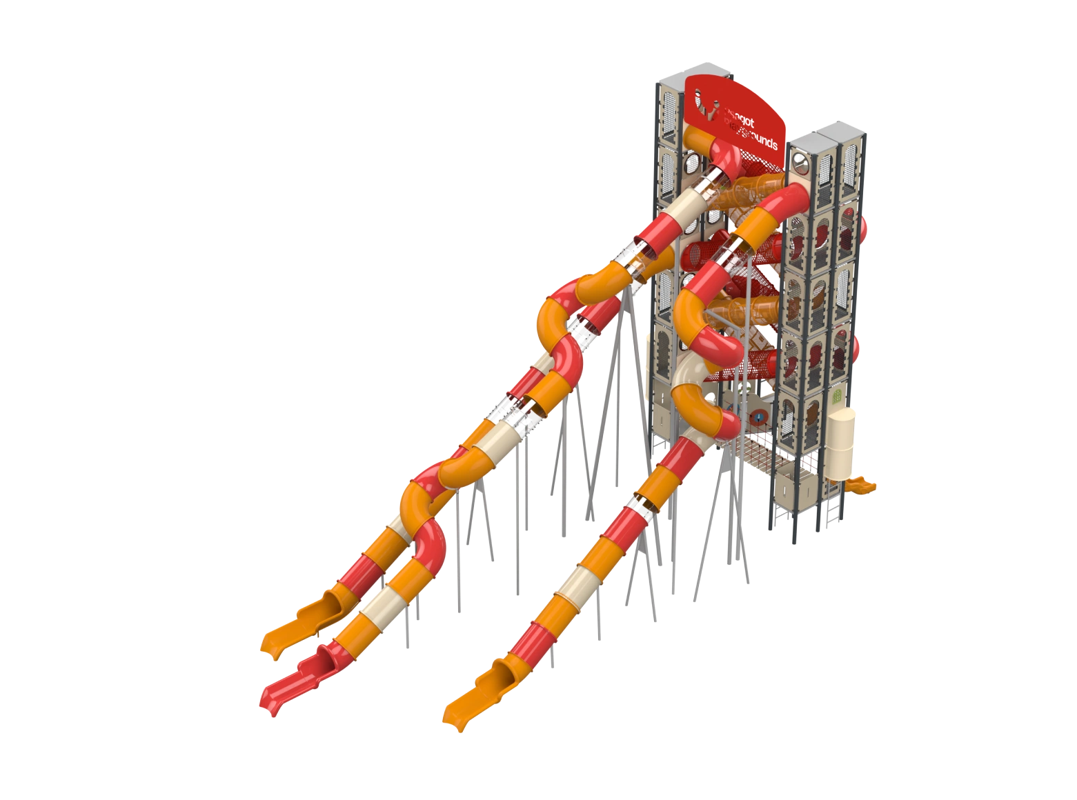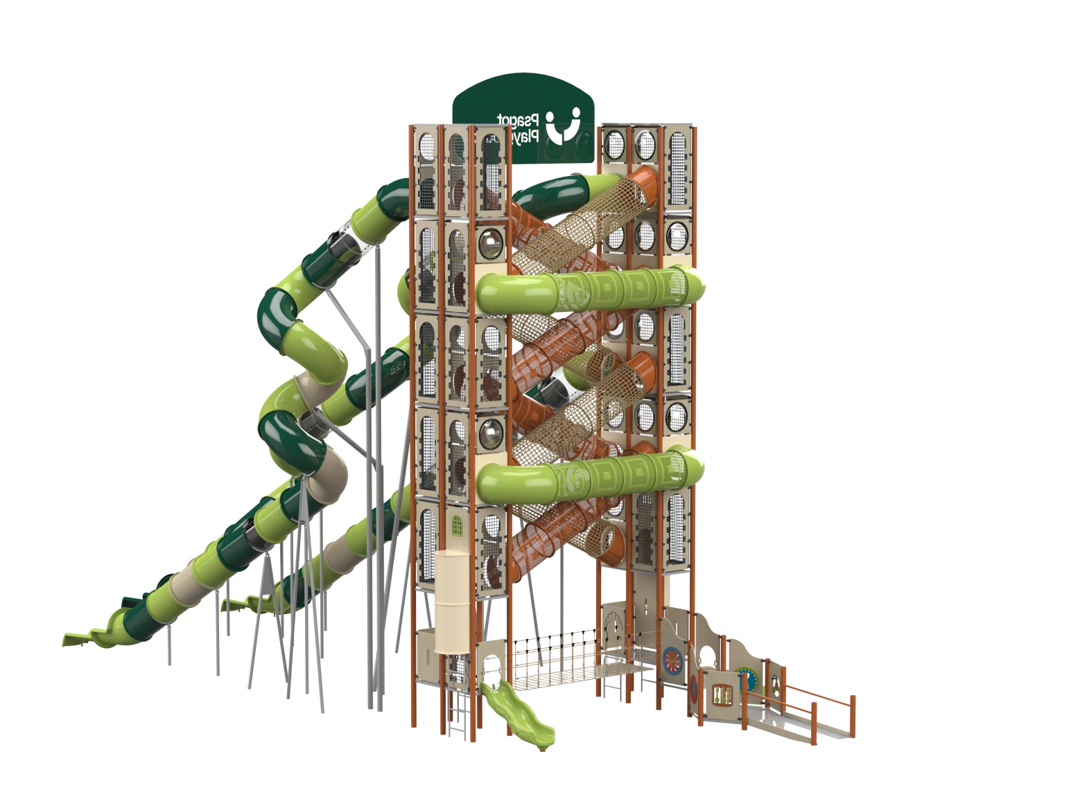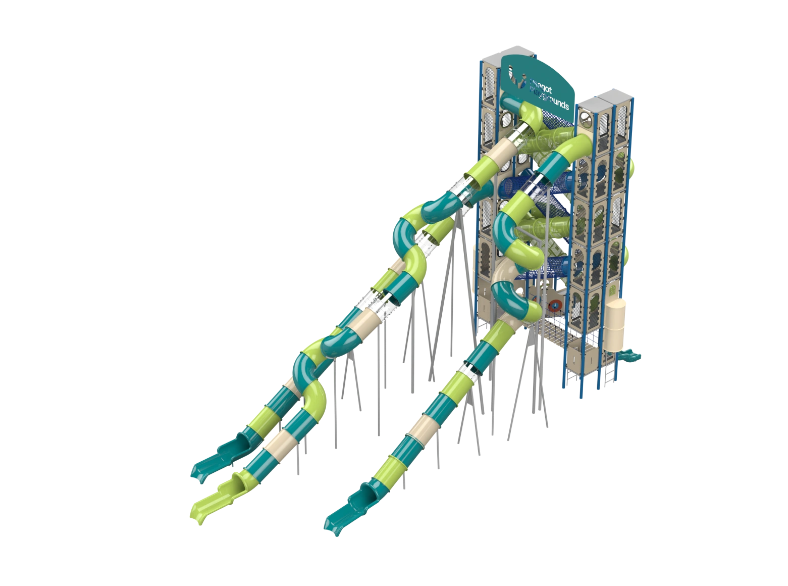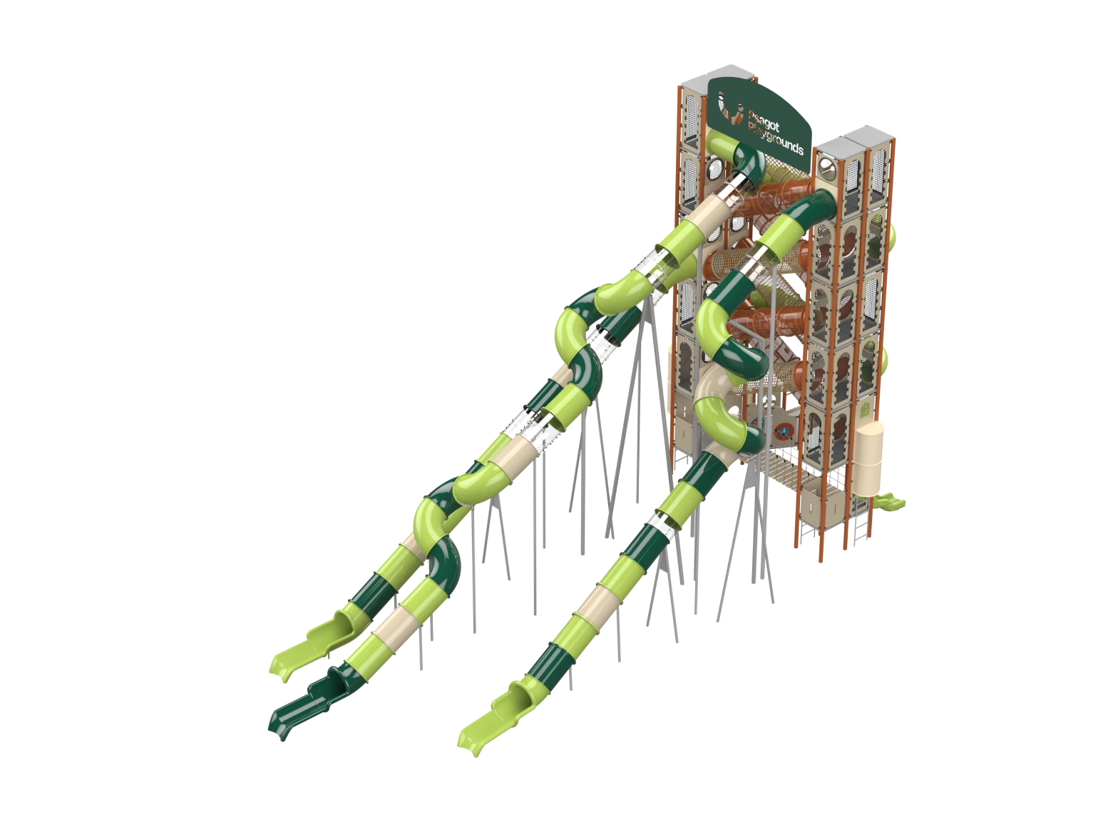 I've sold a lot of playground equipment, and the Los Angeles is the structure that makes people stop and look. The height alone does that, but what makes it more than a visual statement is the transparent design. Panels and even slide sections use see-through materials, so a parent standing at ground level can track their child through the upper levels. That transparency turns what could be an anxiety-inducing tall structure into one where families feel comfortable letting kids explore.