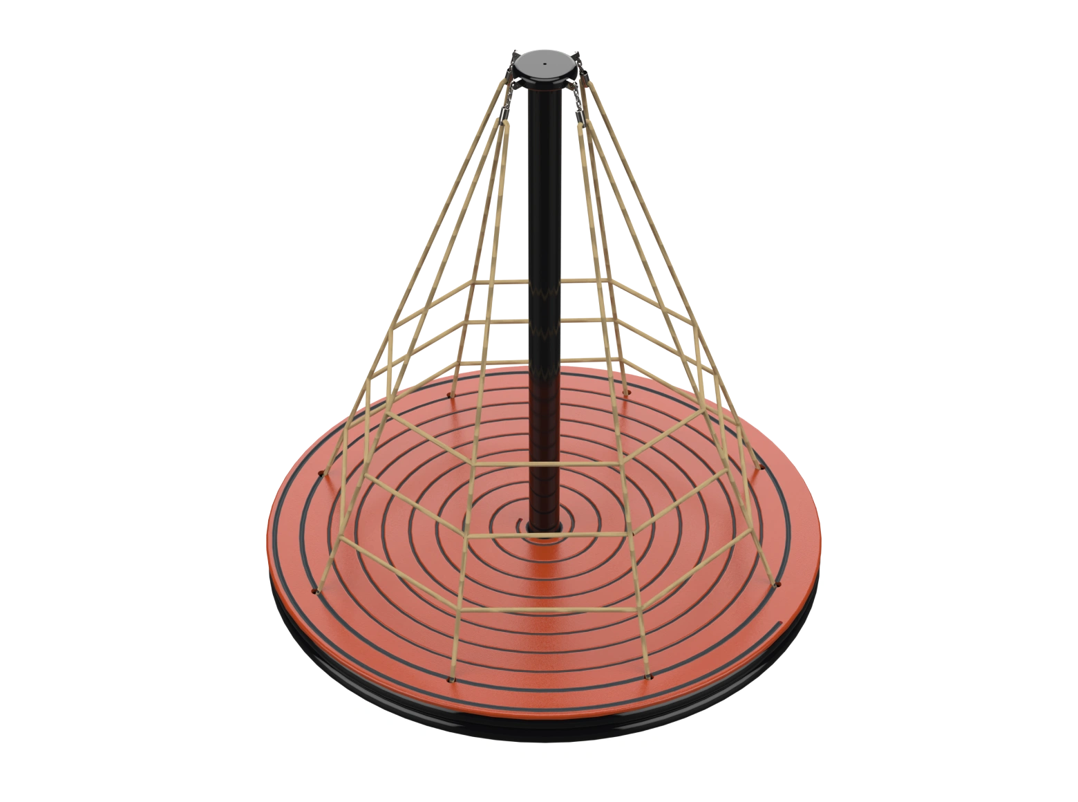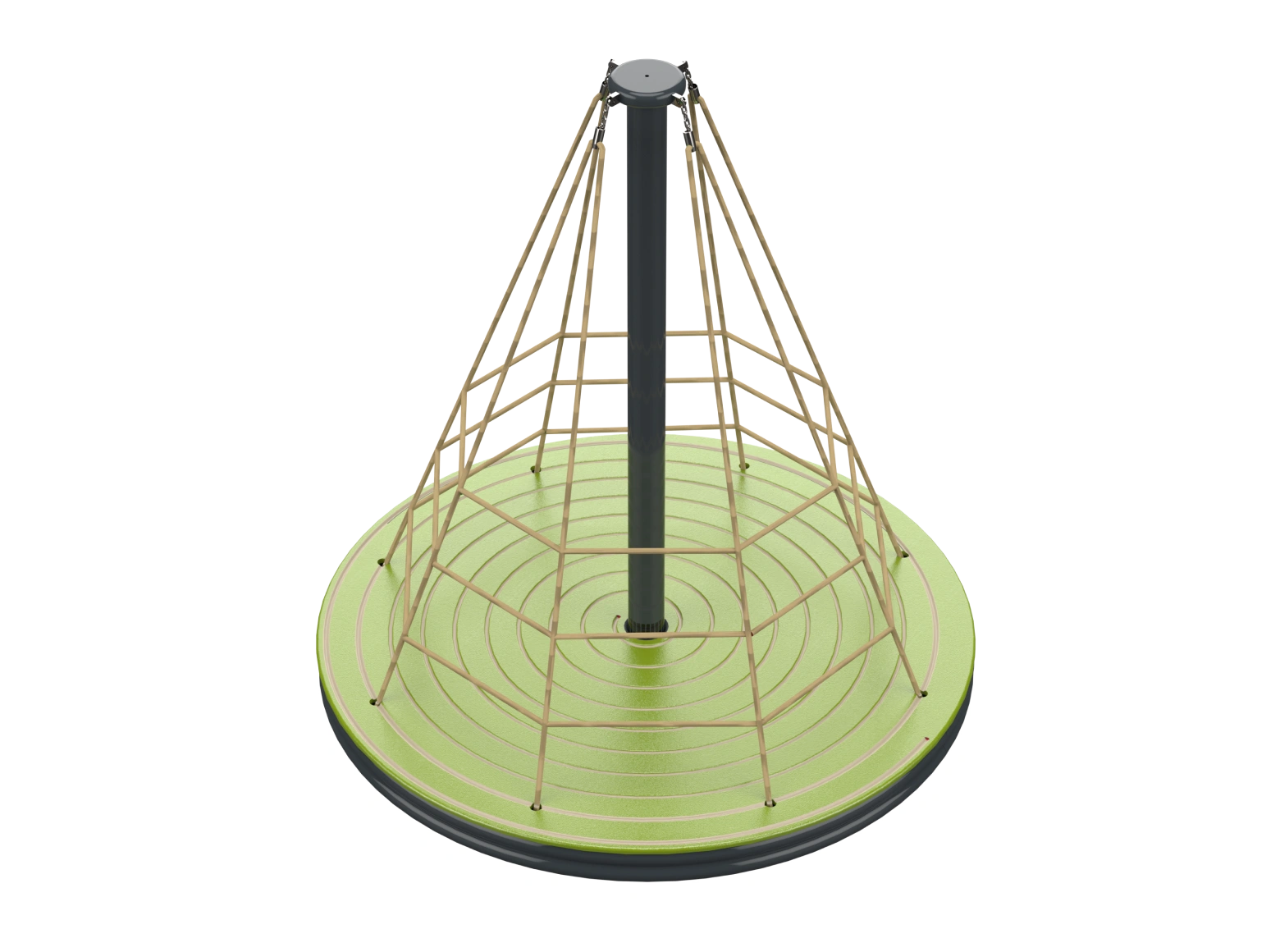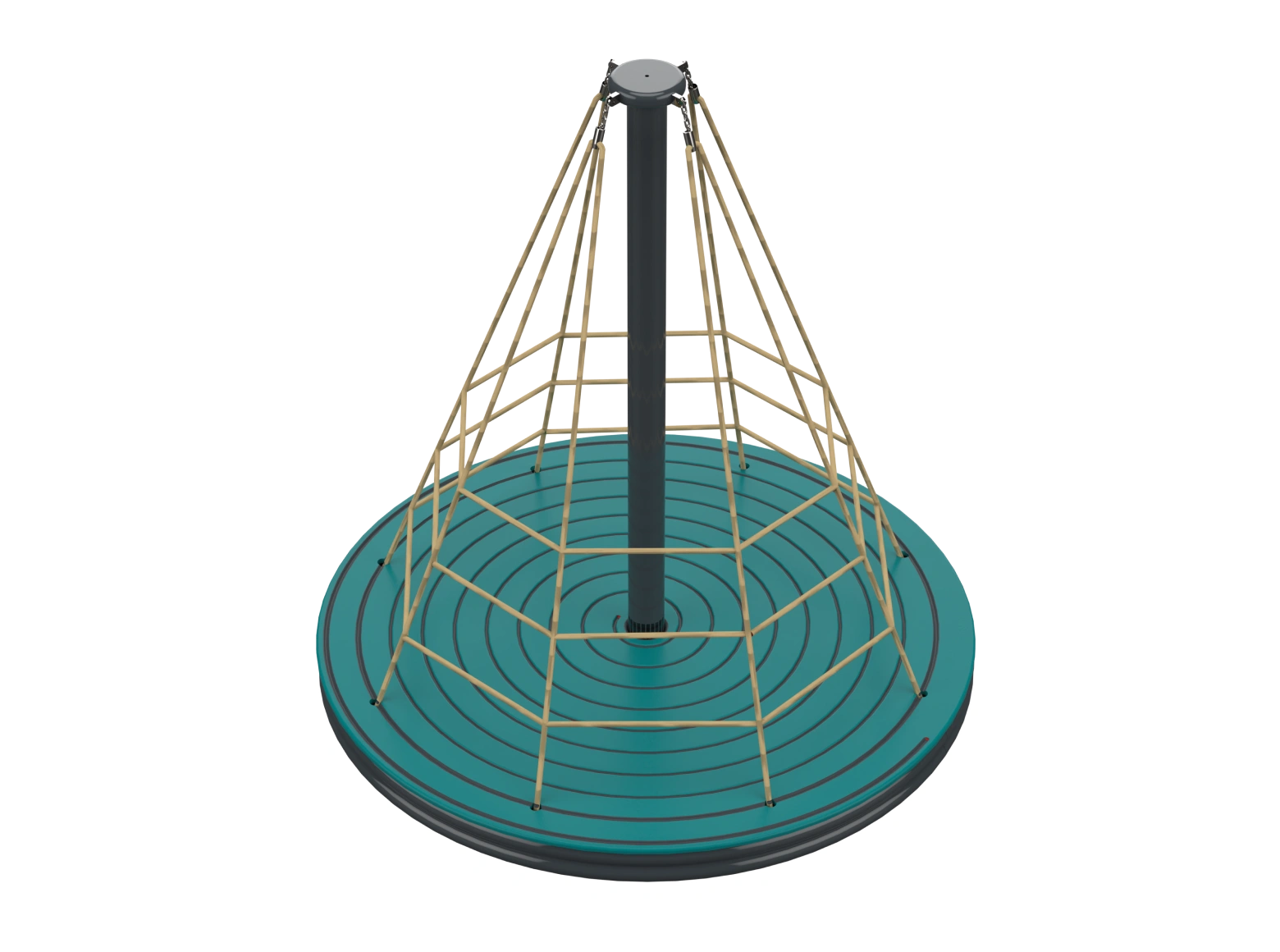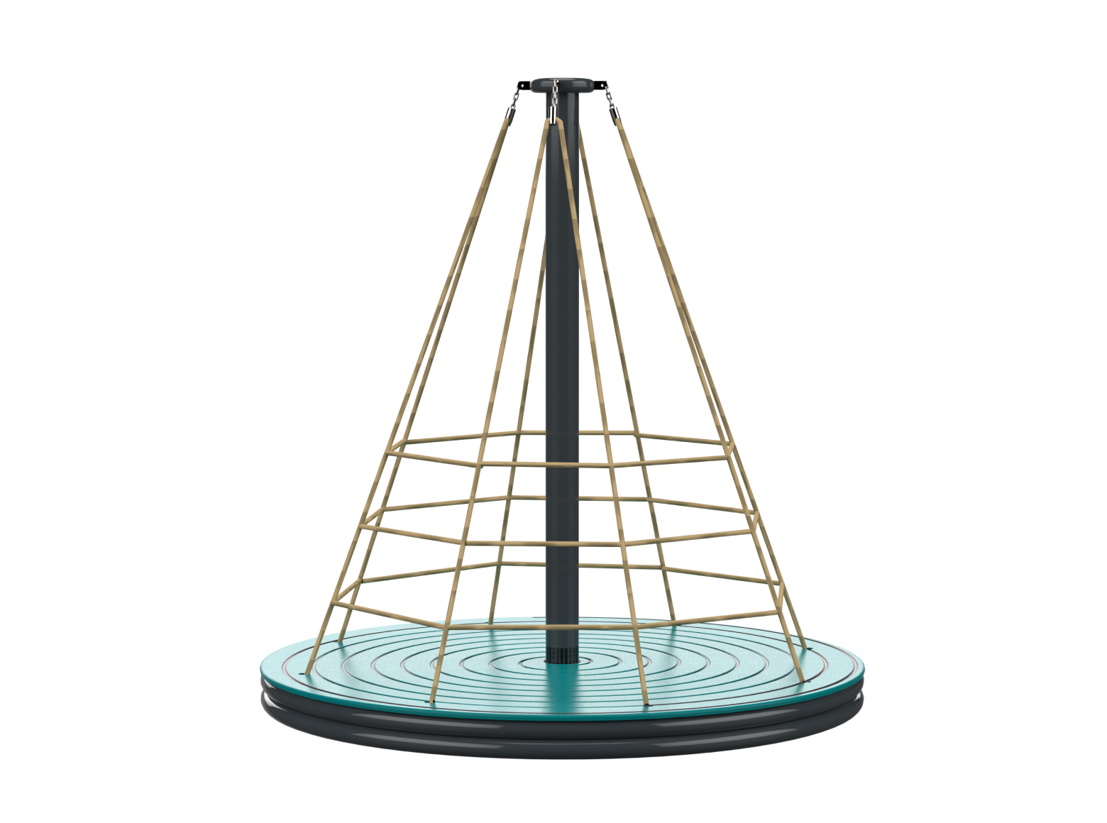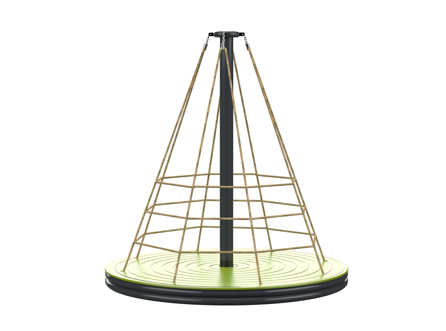 The Psagot Playgrounds Apollo Rope Spinner is a carousel that doubles as a climbing structure. Kids grab the cables, pull themselves up, and spin — all at the same time. HDPE and cable construction with a clean look. Holds 10 children, ages 5-12.