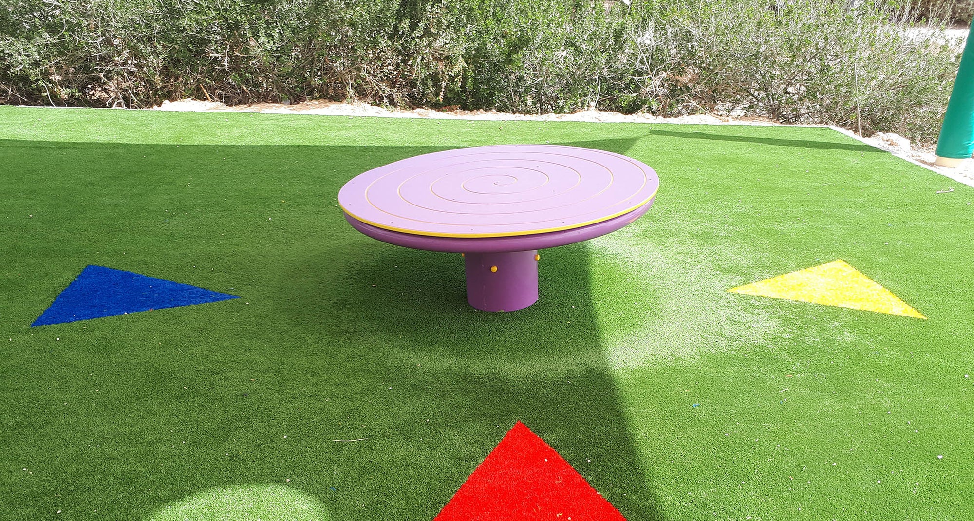 The Psagot Playgrounds Tornado B is the compact version of the Tornado — same sloped plate spinning concept, but sized for 8 kids instead of 20. The tilted surface still creates that shifting balance challenge during rotation. Ages 5-12.