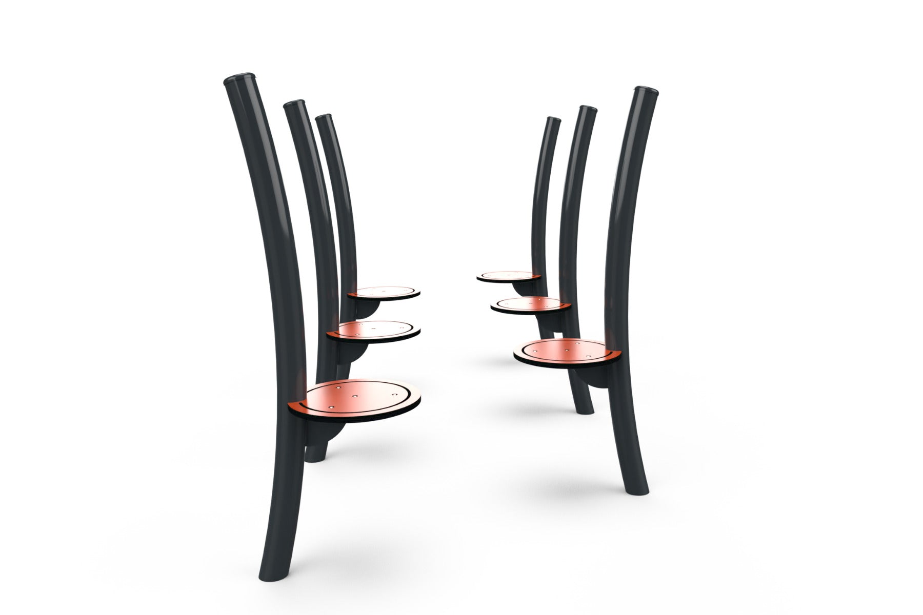 The Psagot Playgrounds Ninja Pipe Path is a platform-hopping obstacle focused on leg strength. Users jump from platform to platform using their legs, with support pipes available to grab if they need help. That means beginners can use the pipes for stability and experienced users can go hands-free. Fits up to 8 users, ages 5-12.