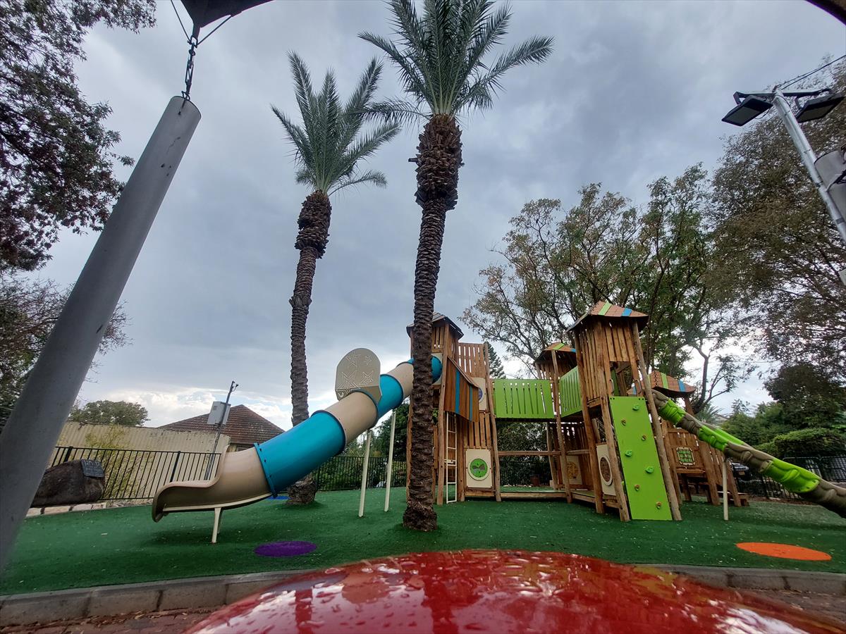 The Psagot Playgrounds Cortado pairs European Robinia wood with colorful HPL panels for a structure that feels natural and modern at the same time. Climbing walls, slides at different heights, bridges, and rope nets spread across a 52-foot footprint, giving 65 kids room to play without bottlenecks. Ages 5-12. ASTM F1487 and IPEMA certified.