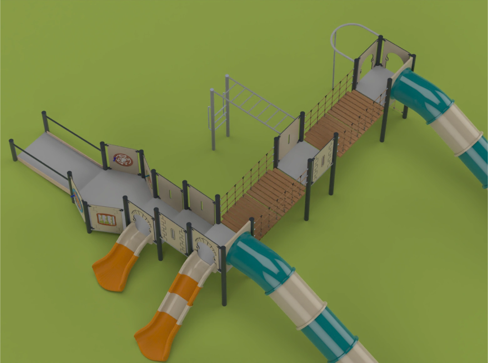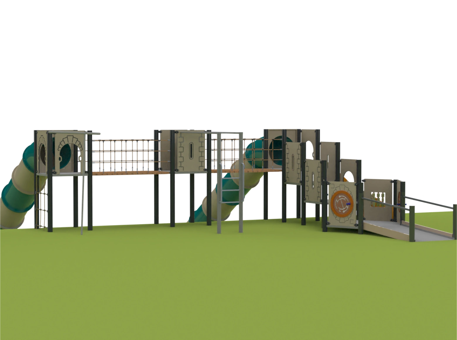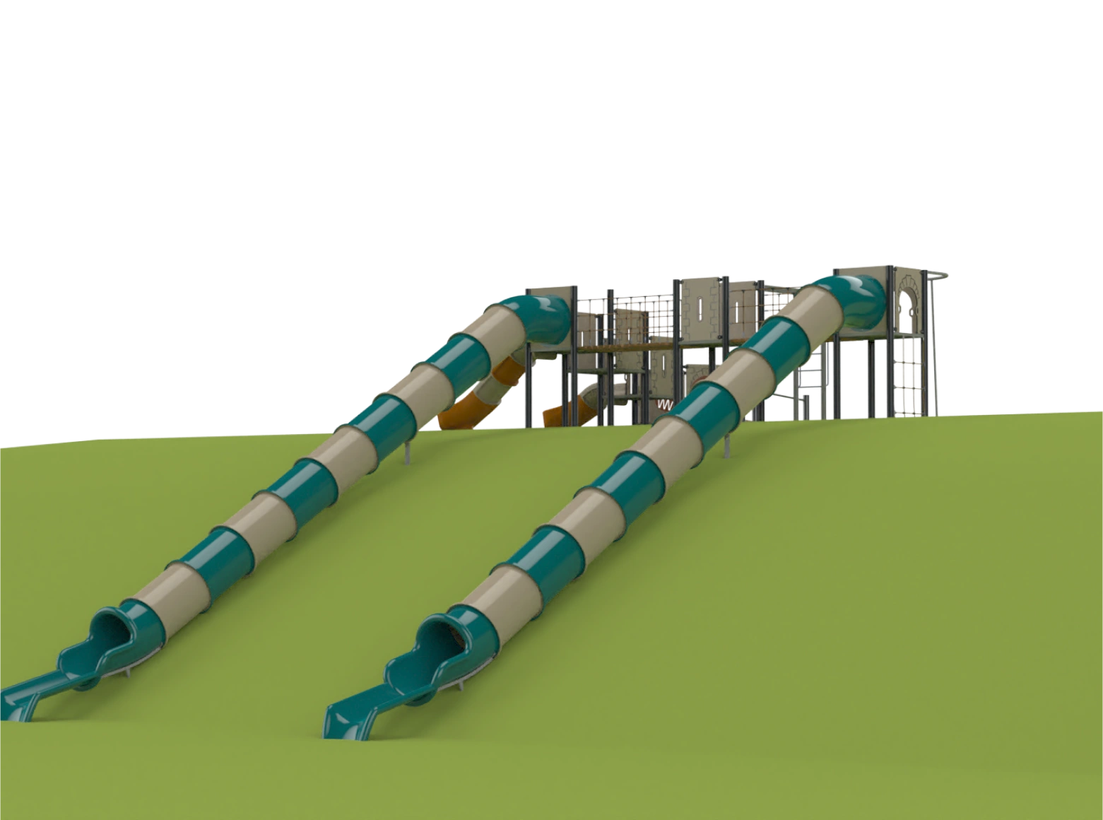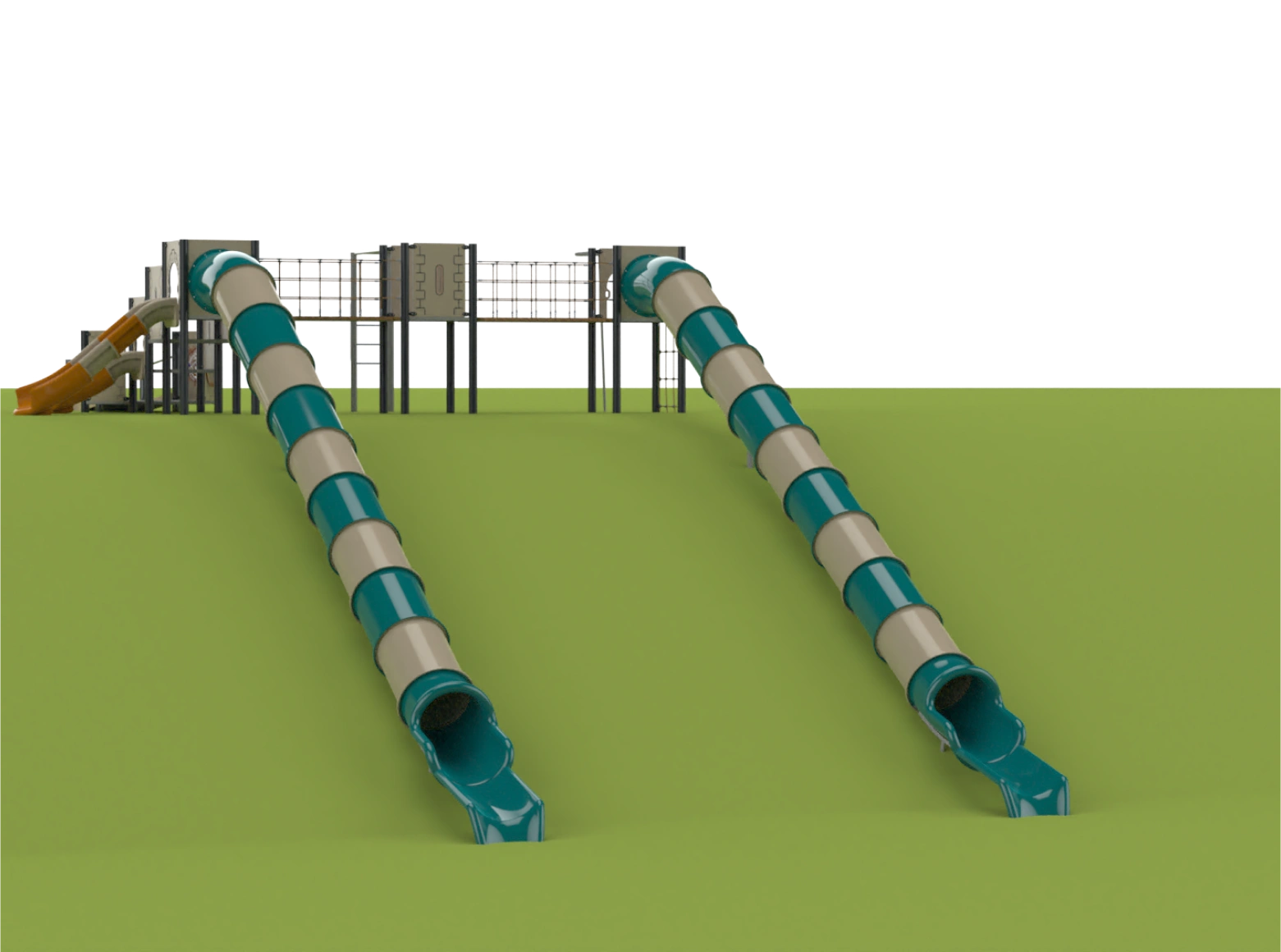 BEST FOR: Parks and recreation sites with significant grade changes where standard flat-ground playgrounds won't work or would require expensive site prep. If you've been looking at a hillside and wondering how to make it useful, this is the answer — 62 kids worth of play value on terrain that would otherwise just be mowed.