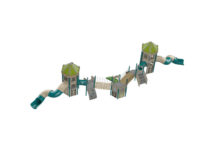 BEST FOR: Municipal parks, large schools, and high-traffic recreation areas that need serious toddler capacity without dedicating a massive footprint. The Trenton makes sense when you're serving 50-plus kids in the 2-5 range during peak hours and you need a structure where they can spread out across climbing towers instead of queuing at a single slide. I'd lean toward this for older toddlers — 3-to-5-year-olds who are ready for height and challenge.