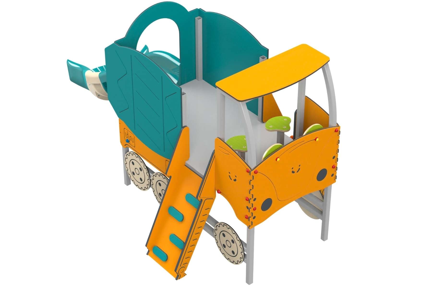 BEST FOR: Parks and daycares looking for a vehicle-themed toddler structure that mixes climbing, sliding, and pretend driving in one high-capacity unit for ages 2-5.
