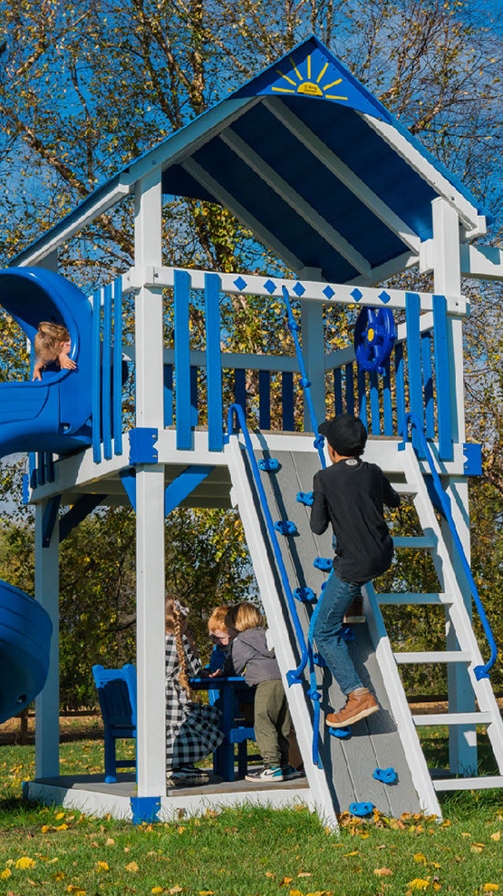 We offer a wide range of variations for our swingsets, as well as premium add ons to expand the playground experience.