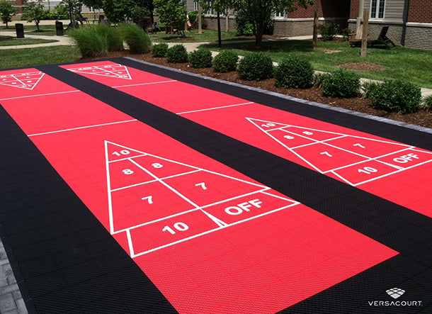 VersaCourt shuffleboard courts are a cost-effective and low maintenance alternative to traditional stained concrete courts. Our courts can be placed directly onto nearly any solid, flat surface including driveways, patios, and decks. They are not only a great aesthetic addition to your property, but they provide a perfect disc glide for competitive play.